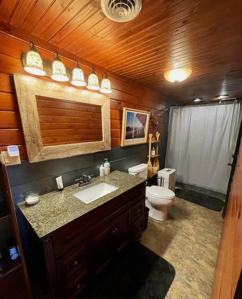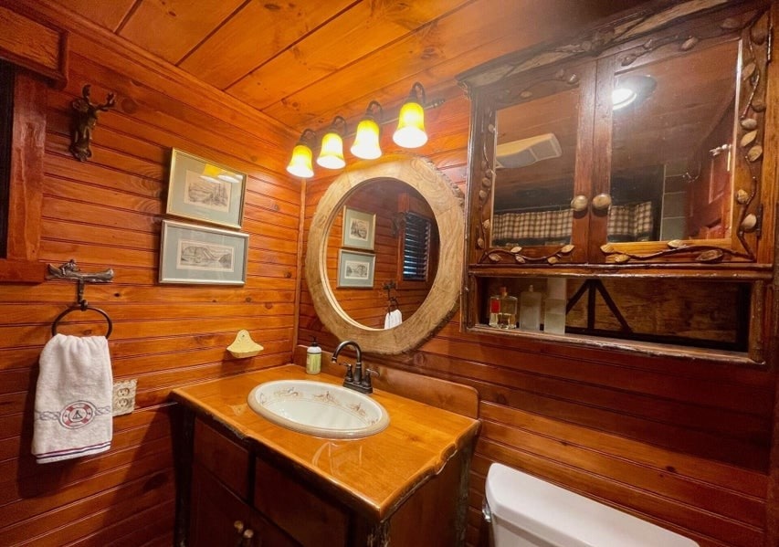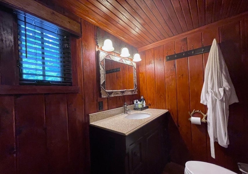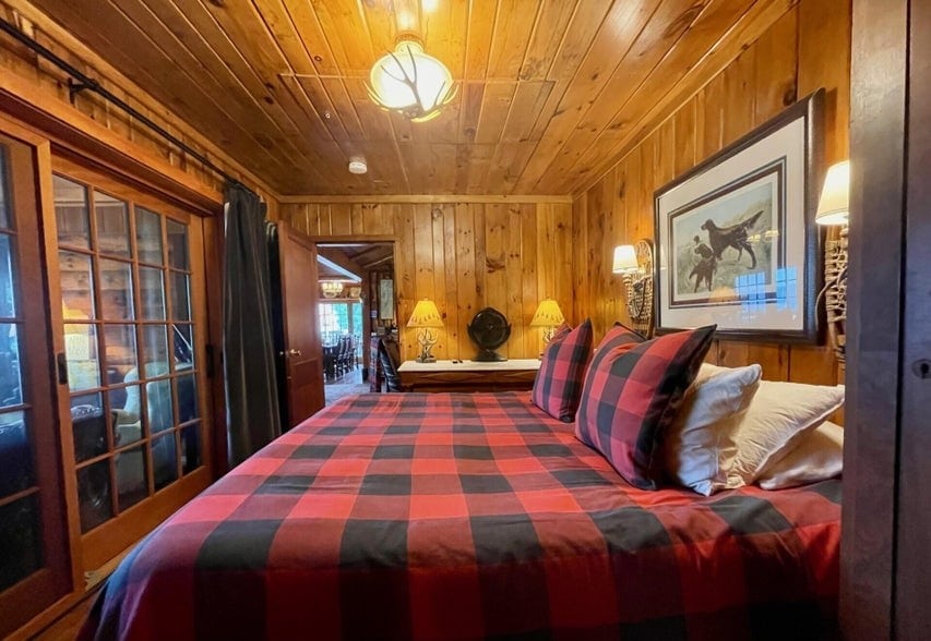 With five beautifully appointed bedrooms, the home comfortably accommodates your group. The primary suite serves as a private retreat, featuring a king bed and a luxurious ensuite bath for added comfort and privacy. There are two more bathrooms and bedrooms on this level, one with a queen bed and the other with a twin bed. The lake level offers the two remaining bedrooms, each bedroom features its own private exterior entrance, offering added privacy and convenience. One bedroom features a king bed while the other has queen bed. The bedrooms are attached to a jack and jill bathroom. These bedrooms do not have direct access to the main house.