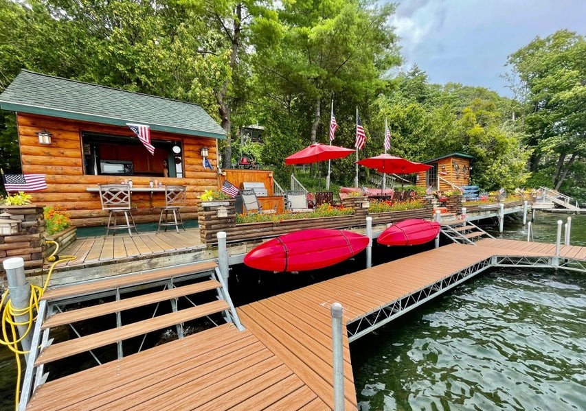 Step outside to enjoy true lakeside living. The outdoor dining area and fully equipped outdoor kitchen, featuring a built-in pizza oven. Whether you’re hosting sunset dinners, enjoying a family pizza night, or relaxing by the water, this property delivers the ultimate luxury lakefront experience. Guests can also access two kayaks and a paddleboard, perfect for enjoying the open water.