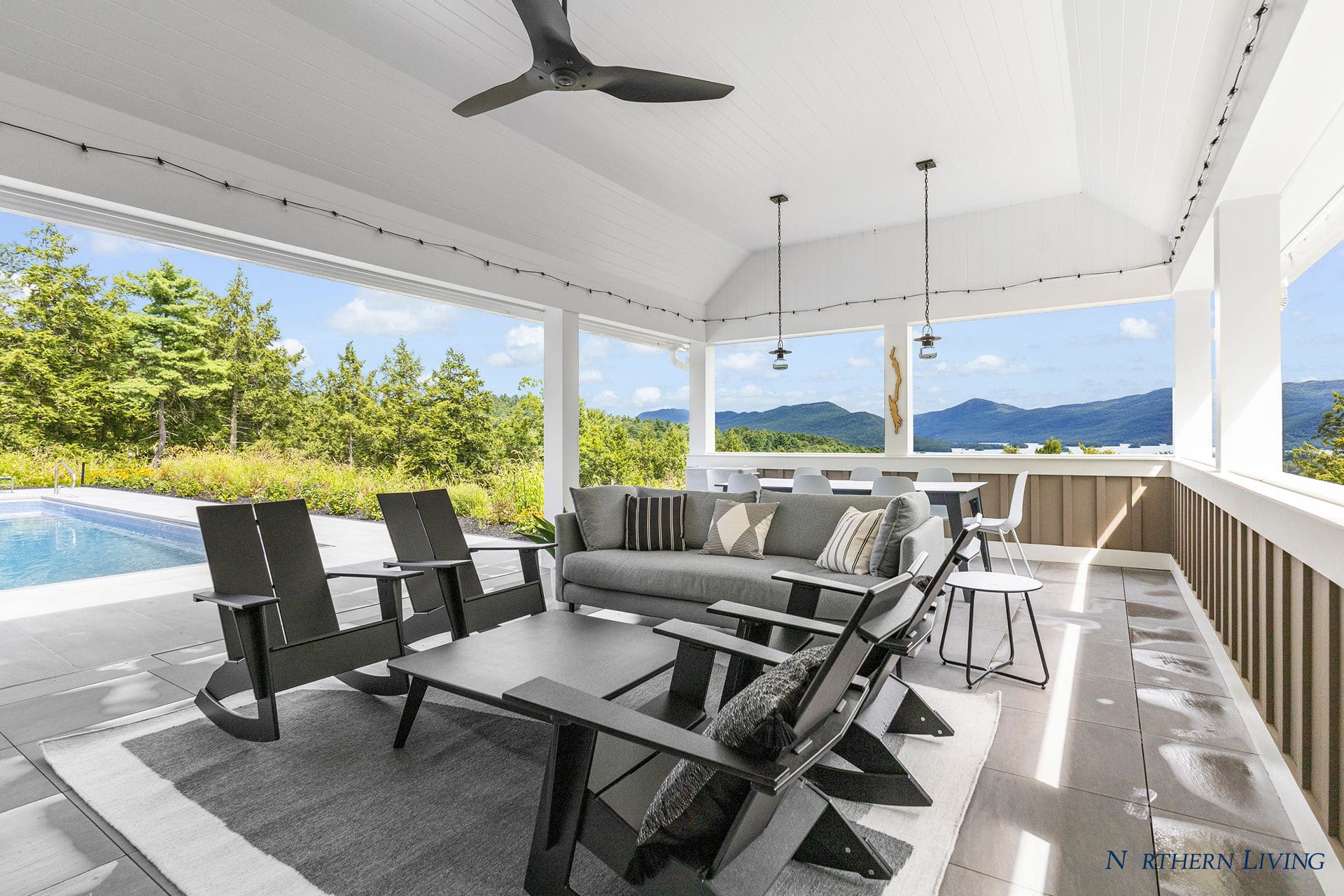Step outside onto the screened-in porch and take in all the gorgeous views while sitting around the outdoor fireplace or enjoying a family meal around the second dining room table. There is also a BBQ grill for all of your outdoor cooking needs and outdoor games to enjoy. To top it all off, a heated pool, kept at 75 degrees, is open from Memorial Day to October 13th, lets you swim with a view of beautiful Lake George.