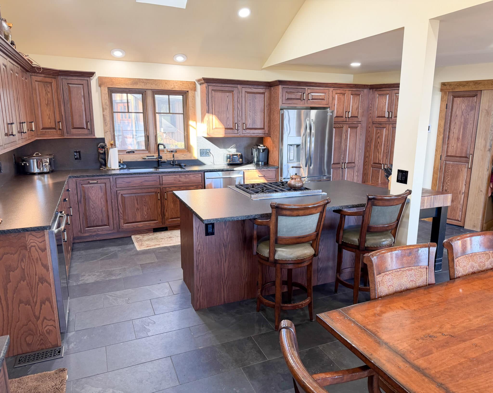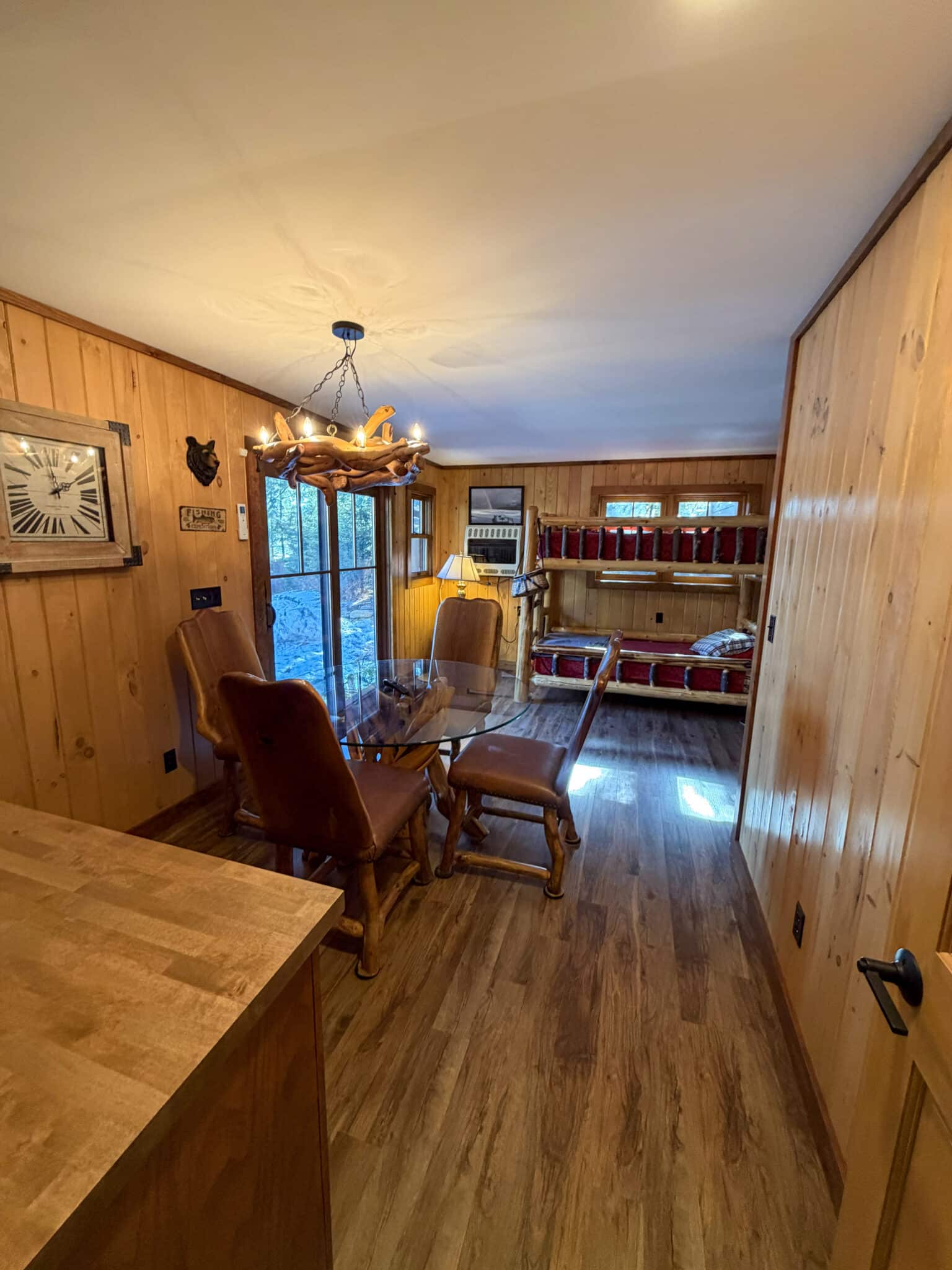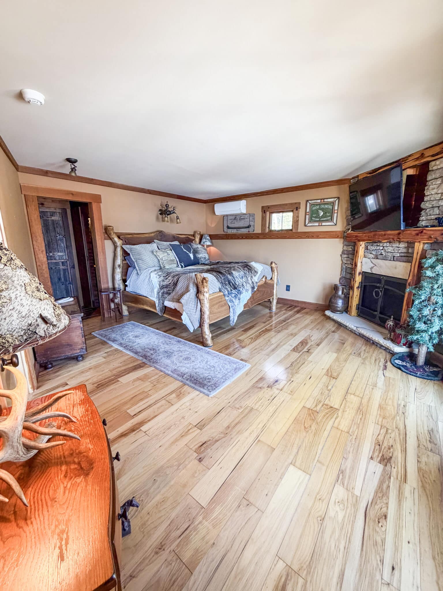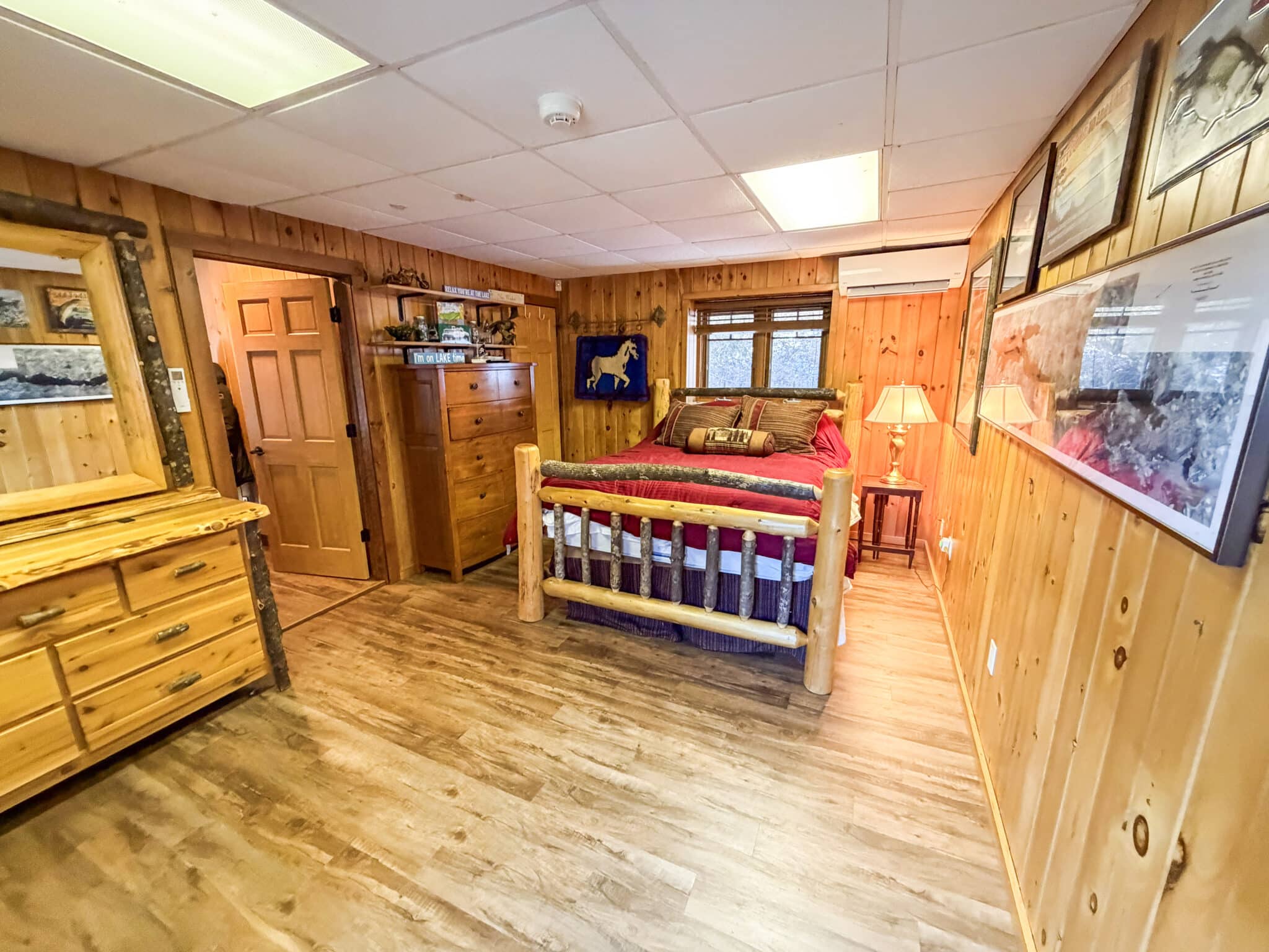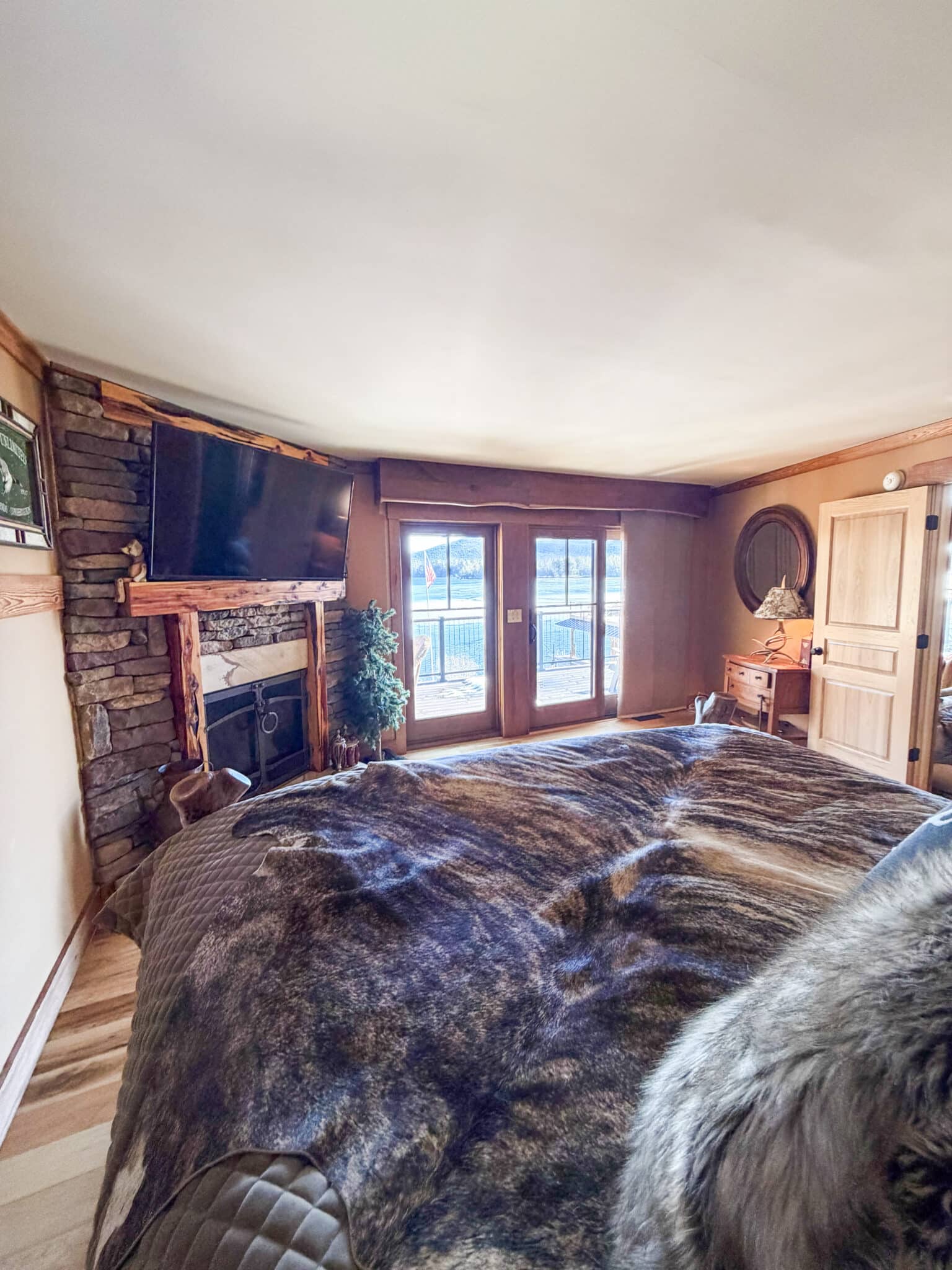 The property comfortably sleeps 14 guests, with a max of 16 guests. The main house features four bedrooms, a loft, and three full bathrooms. The master bedroom offers a luxurious king bed, a gas fireplace, and an ensuite bathroom. The three additional bedrooms each include queen beds, one on the main level and the other on the lake level. Each level also features a full bath. The lake level also offers a washer and dryer. The loft area provides extra sleeping and gathering space, making this home ideal for both relaxation and entertaining. At the heart of the home is a stunning open-concept kitchen, dining, and living area, thoughtfully designed for both entertaining and relaxation. Expansive windows frame picturesque, unobstructed views of Lake George, filling the space with natural light and creating a seamless connection to the outdoors. The gourmet kitchen flows effortlessly into the dining area and sophisticated living room, making it the perfect setting for memorable gatherings.