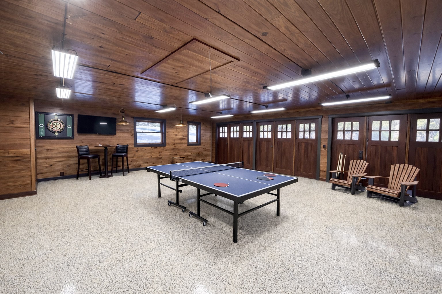 The property also includes a charming guest house, complete with a kitchenette, queen bed, two twin-over-twin bunk beds, and a full bathroom—ideal for extended family or added privacy. Attached to the guest house is a large game room with a ping pong table and additional laundry space.