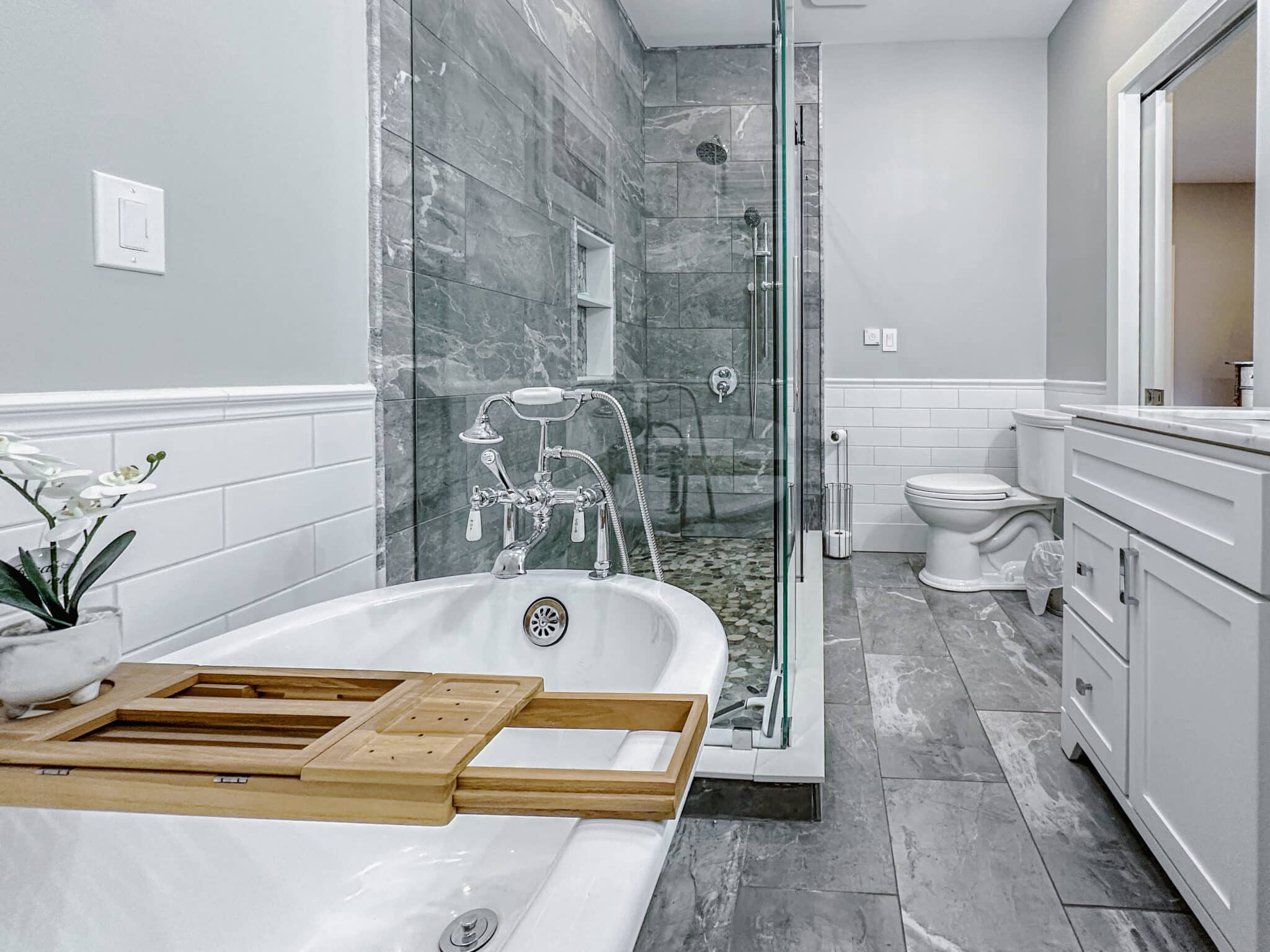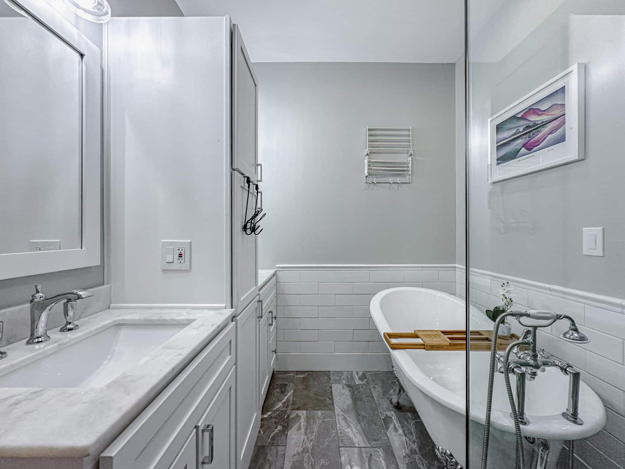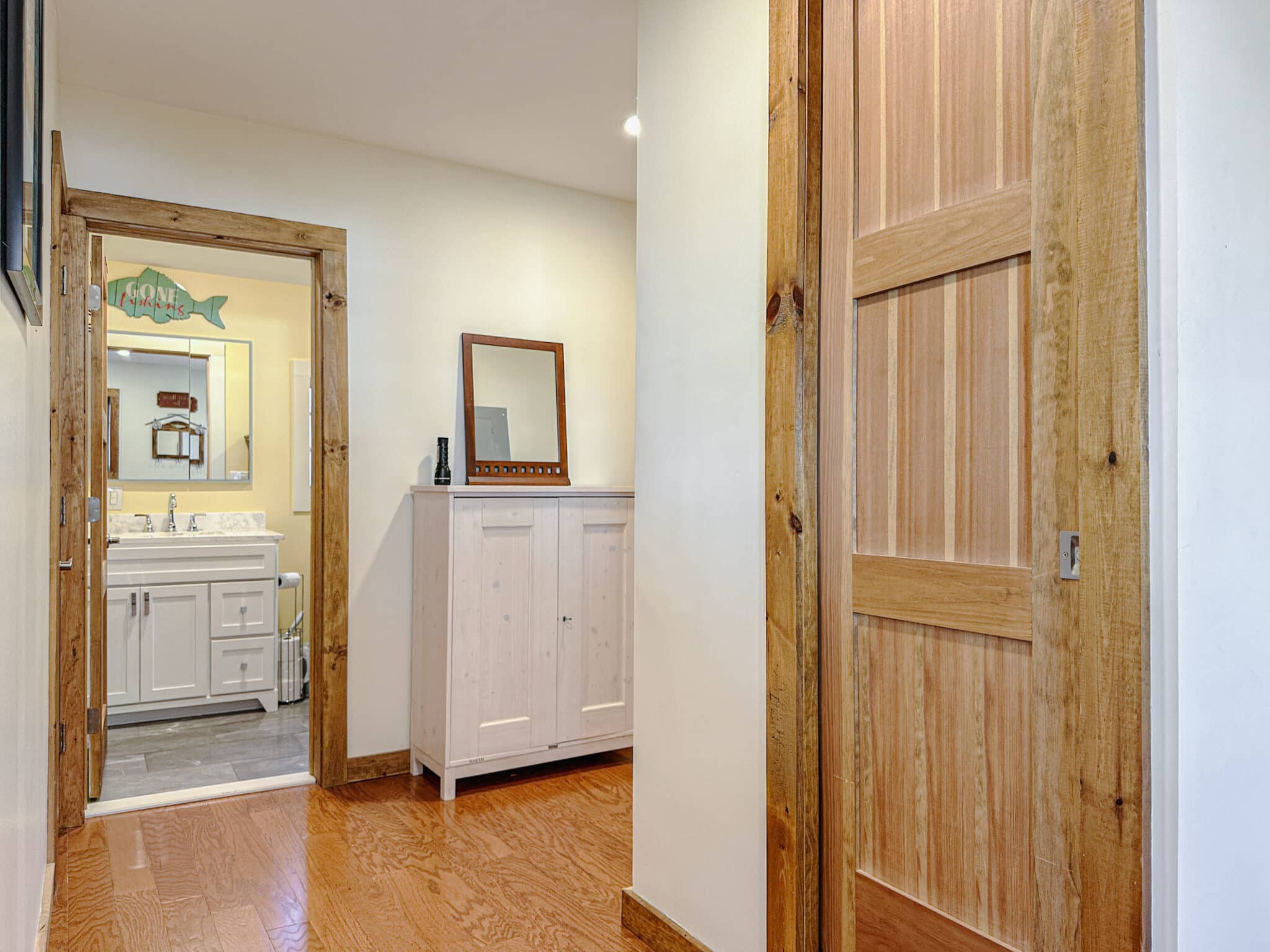 Inside, the home features two beautifully appointed bedrooms. The first offers a queen bed and two twin beds, making it perfect for families or guests, while the second is a serene king suite with a private full bath and indulgent soaking tub. An additional full bath with shower, along with a washer and dryer, ensures effortless comfort throughout your stay.