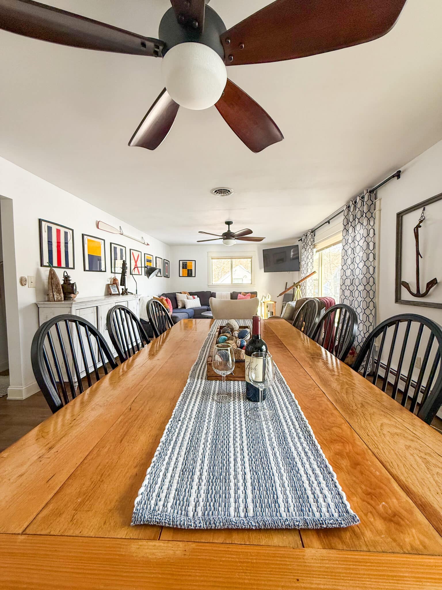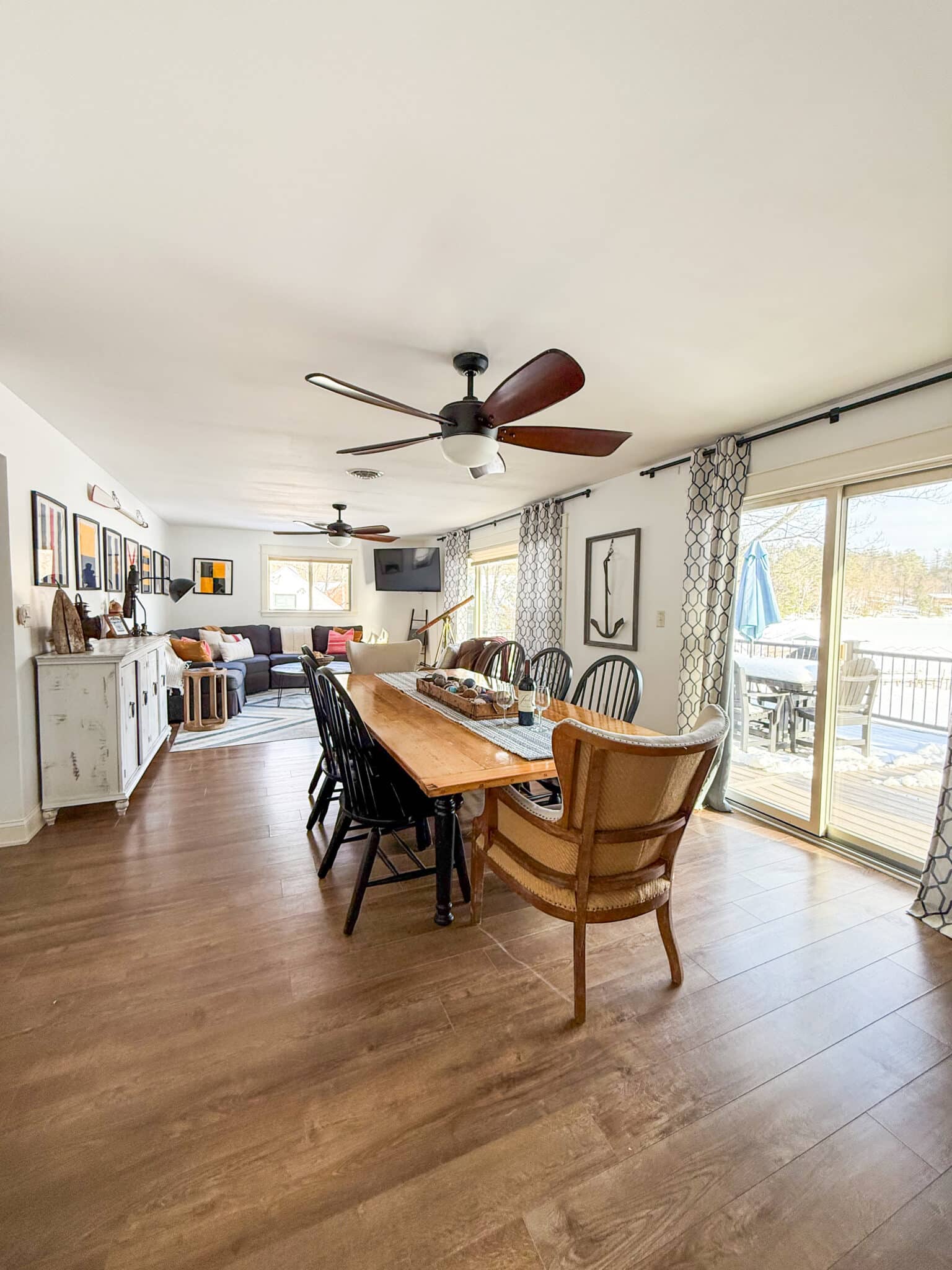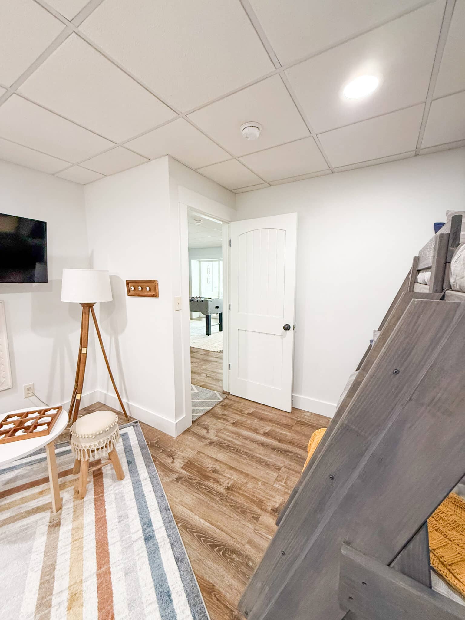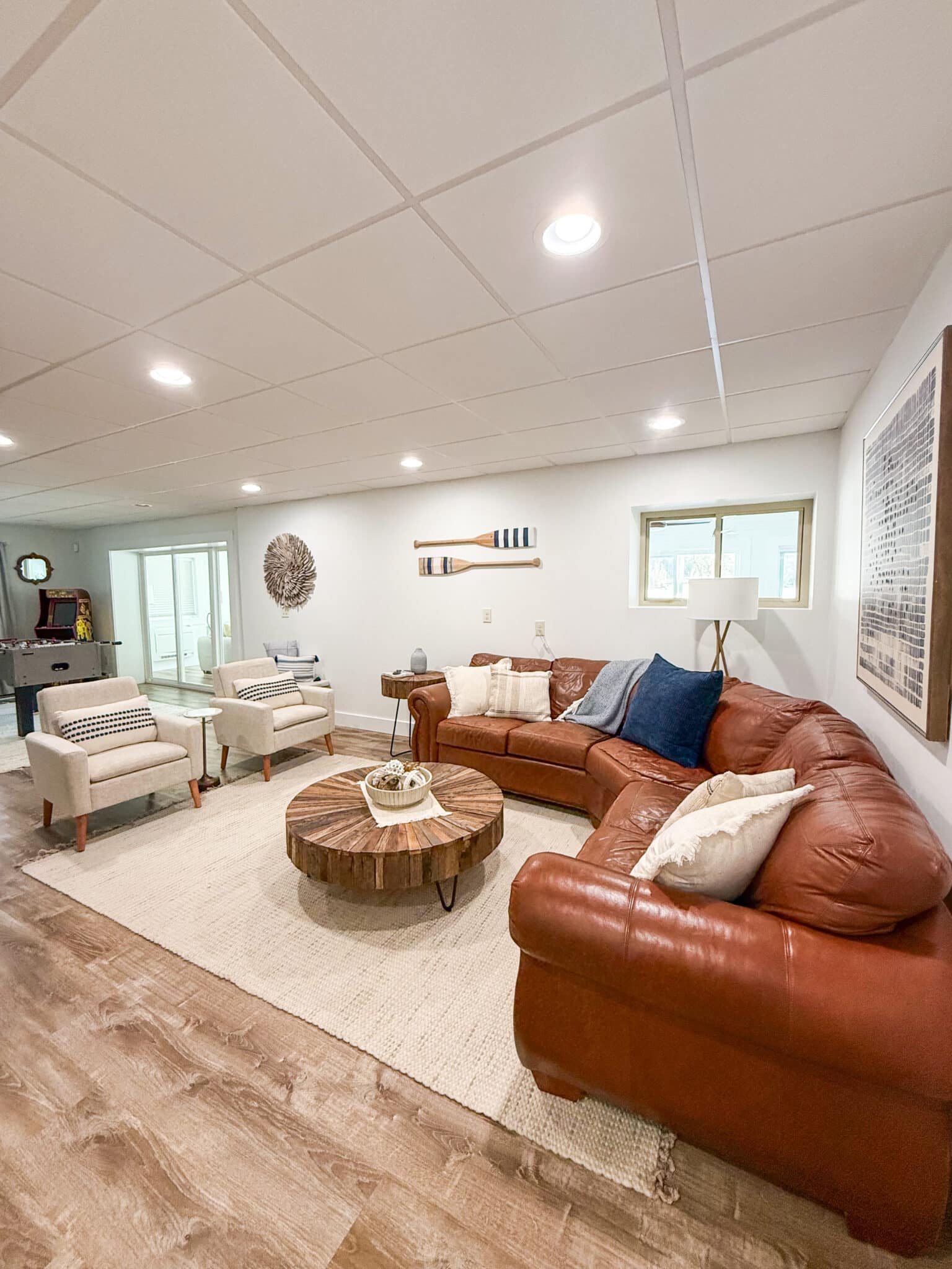 The lake level offers a massive double living space featuring arcade games, a foosball table, one full bath, and two bedrooms. One bedroom features a queen bed, while the other features a twin-over-full bunk bed. Walk out to the three-season room and enjoy all the lake views through the five sliding glass doors!